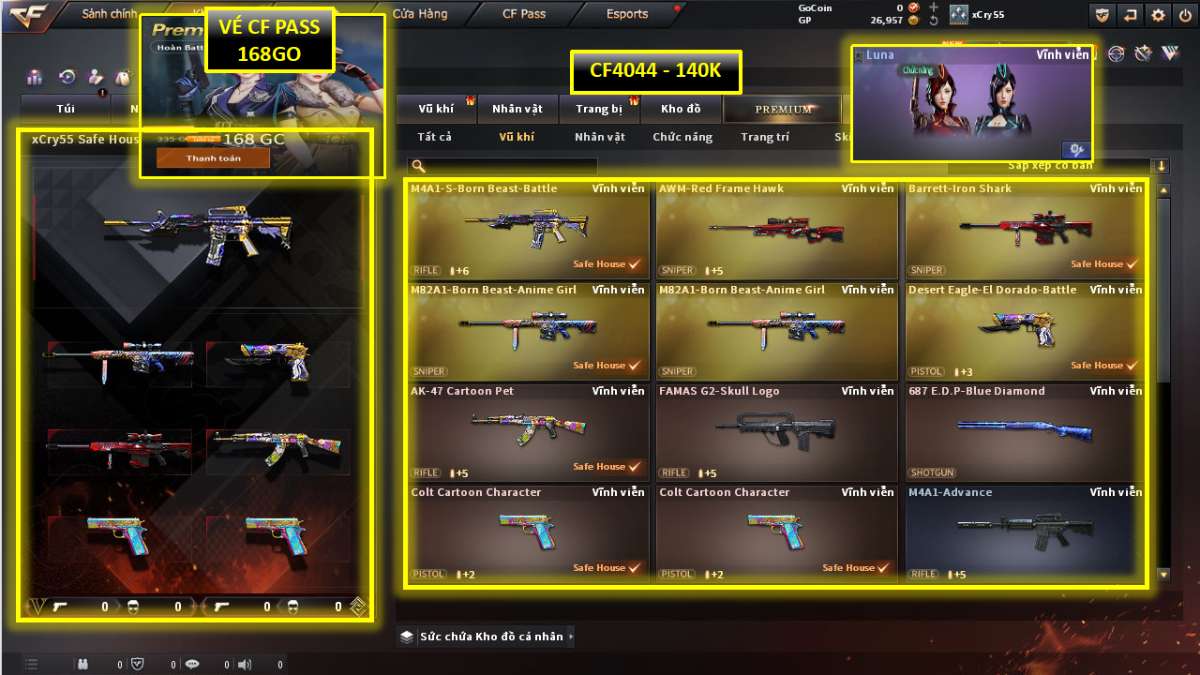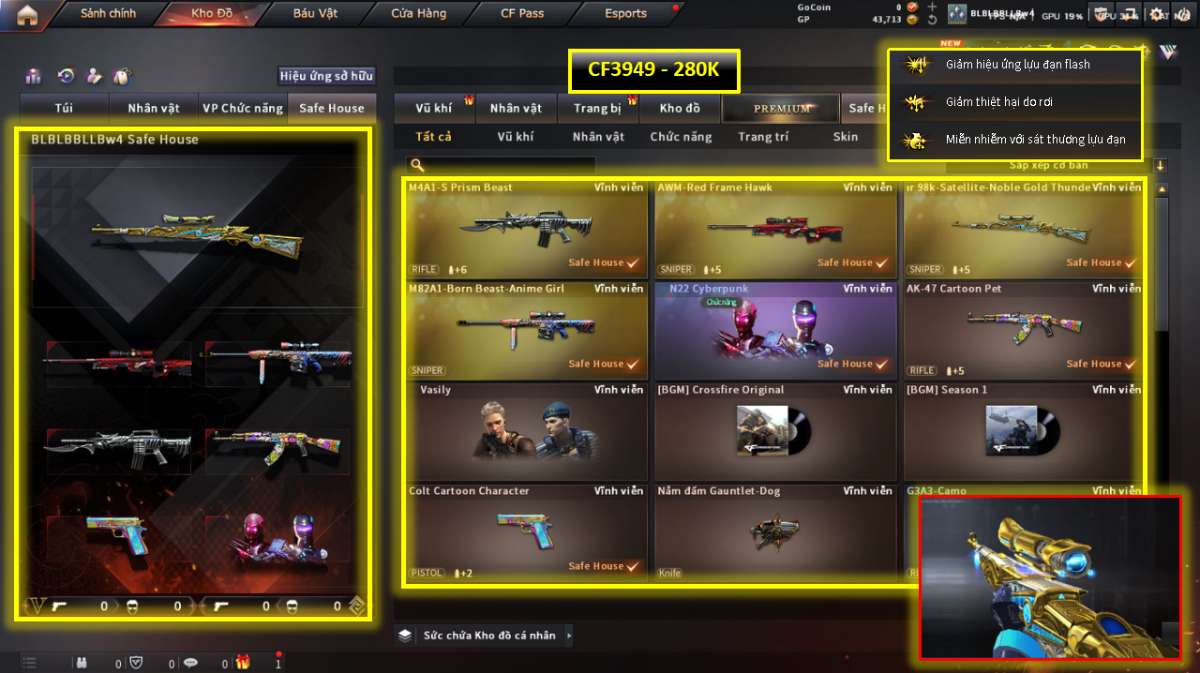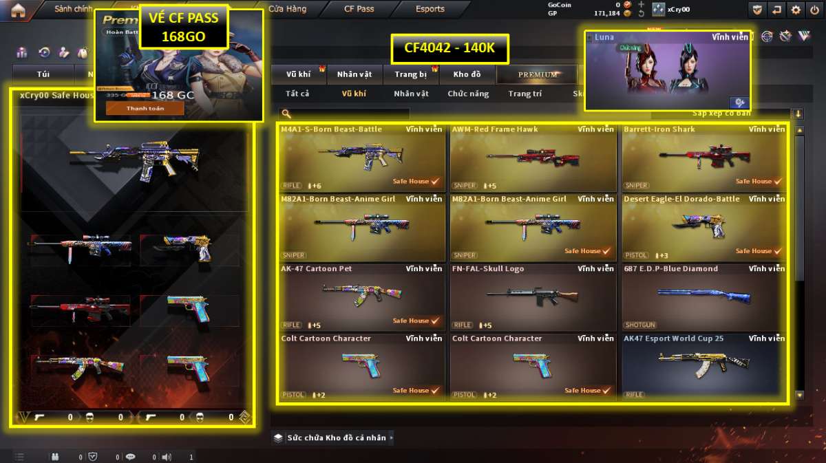 🥷M4 VIP, QBZ, BARET, AWM, AK47, COLT, NV TẨY