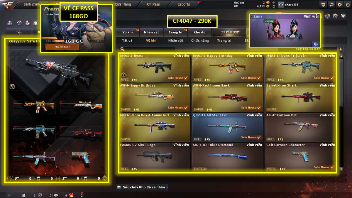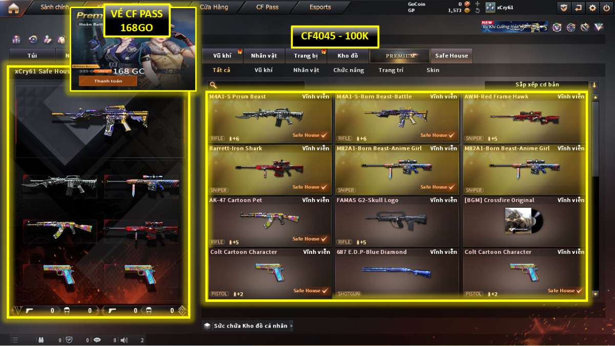 🥷M4 VIP, M4 HAPPY, QBZ, BARET, AWM, AK47, COLT, NV TẨY