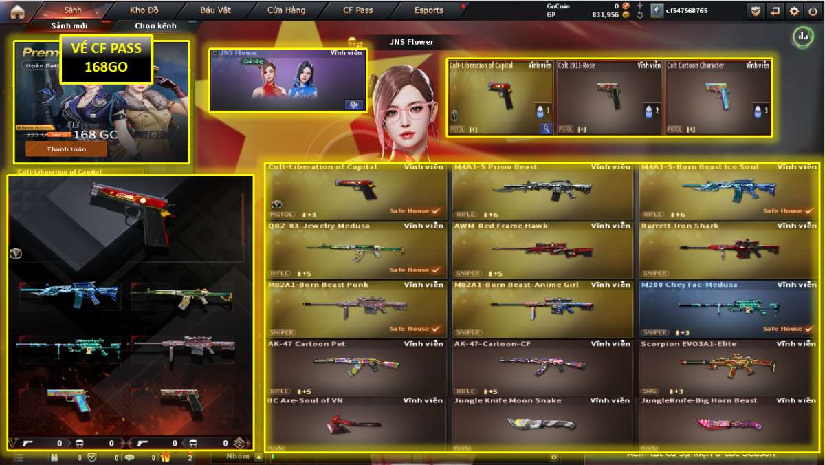 🥷COLT VIP, M4, QBZ, M200, BARET, AWM, AK47, EVO, COLT X3, NV TẨY 3 DÒNG
