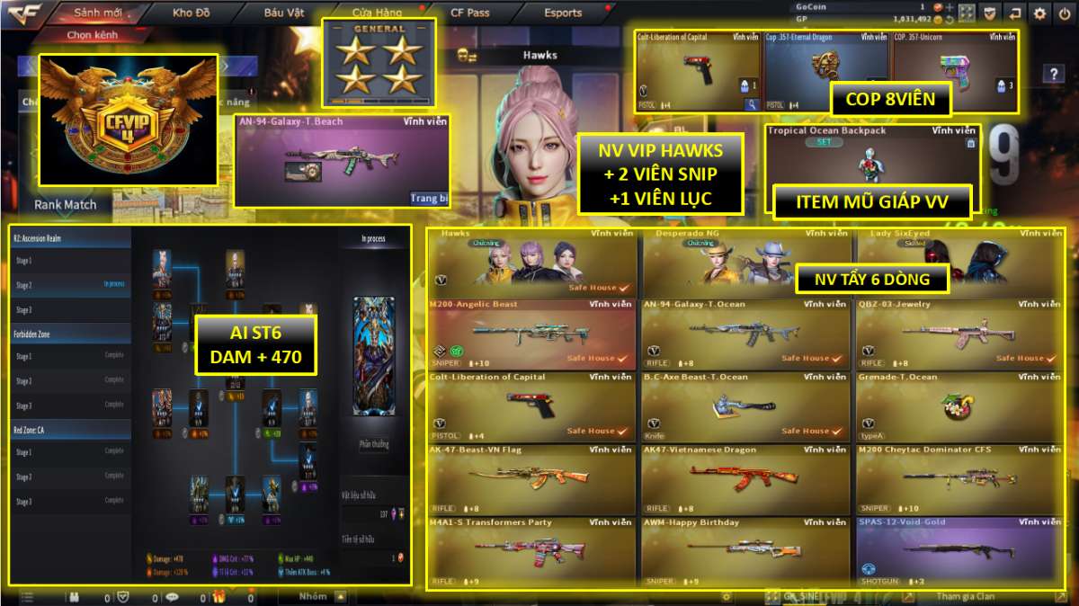 🥷M4 HN VIP, AK47, BARET, AWM, EVO, COLT X2, NV TẨY 3 DÒNG MŨ GIÁP